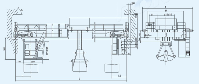 QZ型抓斗橋式起重機廣泛適用于貨場、碼頭等,進行散貨物料的運輸。QZ型抓斗橋式起重機,主要有橋架、大車運行機構(gòu)、小車、抓斗和電氣設(shè)備等組成,其工作級別為A6,環(huán)境工作溫度為-20℃-40℃ ,其起重量包括抓斗重量。本產(chǎn)品為四級室操縱。
